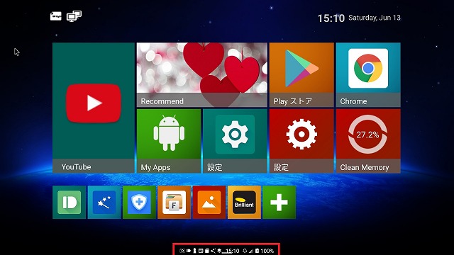 この部分をマウスで下から上にスワイプすると普通のステータスバーと同じような表示が出てきます。